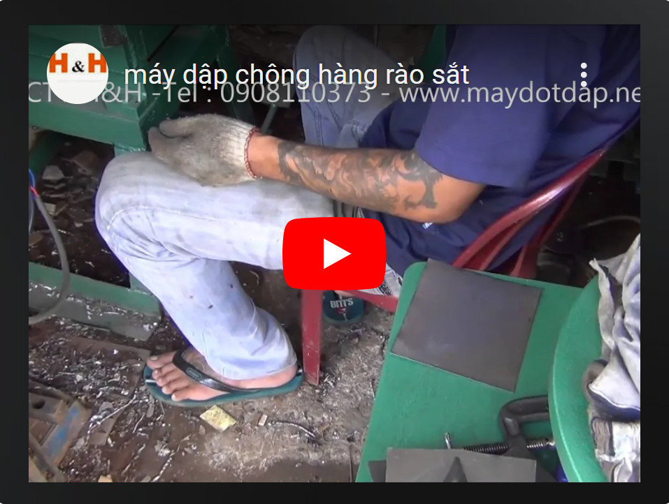 máy dập chông hàng rào sắt bằng máy dập 400kg , lúc dập 8 tấn