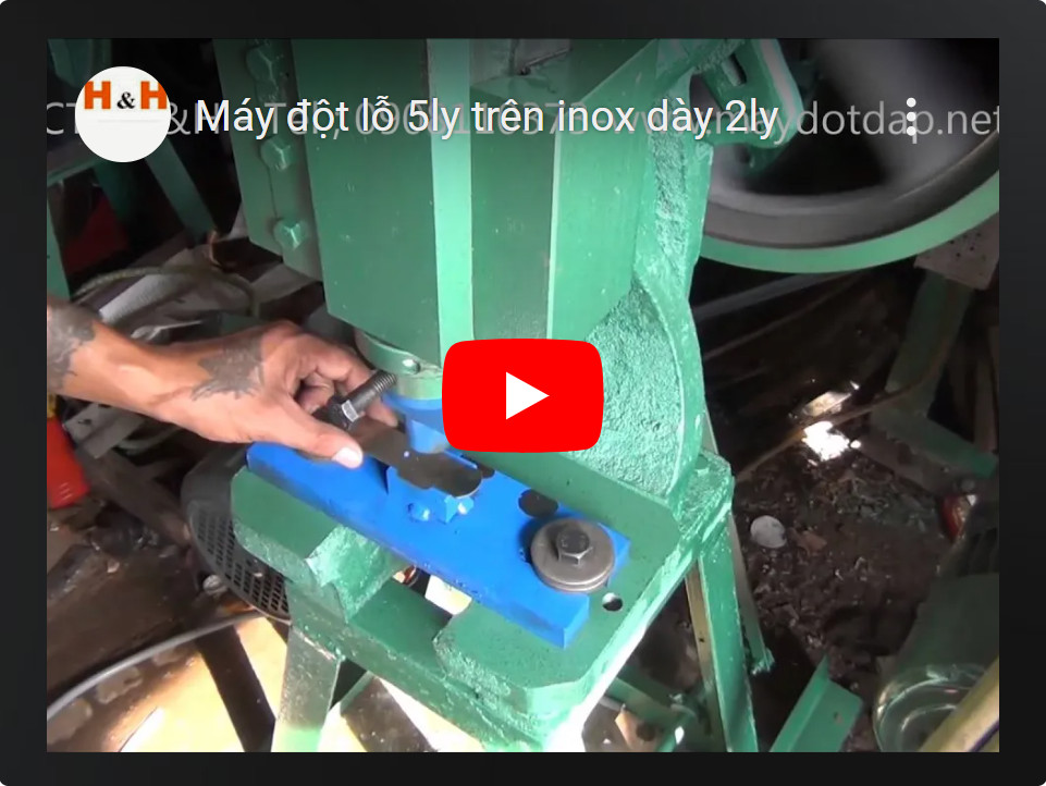 Máy đột lỗ 5ly trên inox dày 2ly sử dụng máy dập 150kg lực dập 3 tấn